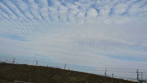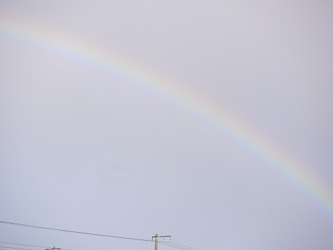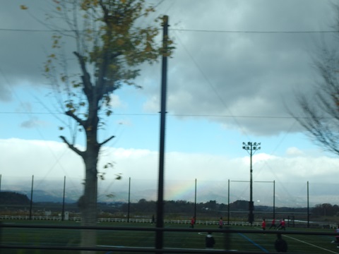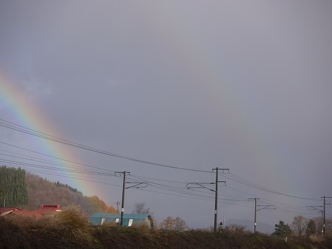 雪がちらほらと舞う今日。これは一日かけて積もっていくのでしょうか?さて、雪の降る前の今月初め頃ことです。打合せのに向かう道中、手前のサッカーコートを走る少年たちと比べ、ずーっ遠くで空へと昇る虹がかなりの大きなものでした。虹の根元まで行けば、もっと大きく見えるのかな?とも思ったのですが、この時ここを通ったことで見えた偶然の自然現象。ぐずついた天気もたまには悪くないなと思う瞬間です。(栗城)