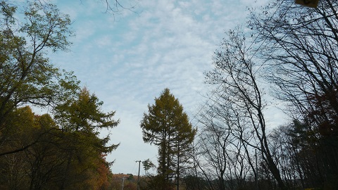 季節が秋の通り過ぎを伝えているかに息白くなり、カラマツの輝きも物寂しくなりました。