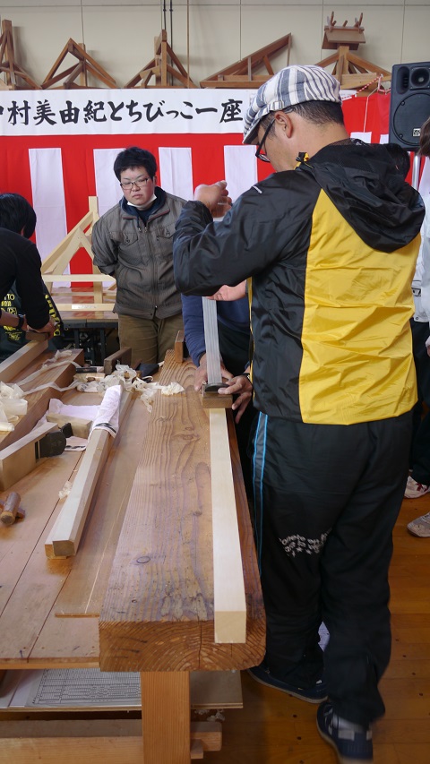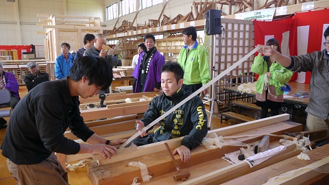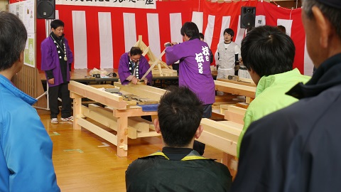 山形県の女性大工かっこ良くて人目を集めていました。手前が敢闘賞の野辺地選手でした。