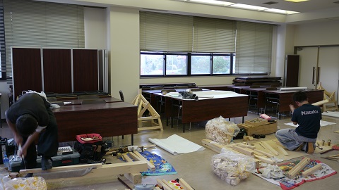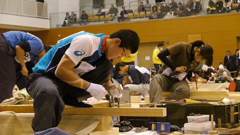 会場とは別室で、技能五輪大会に出場する二人が頑張って練習していました。