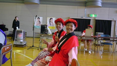 大黒舞出番待ちの6年生、本箱を作った生徒たちです。