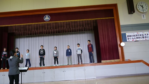 これでも全校生徒による大合唱です。頑張れ久保小!涙が出てきます・・・