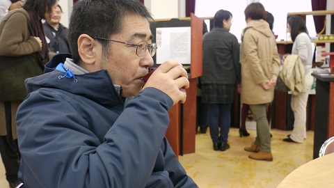 公会堂にて、漆工芸品のイベントが開催されているので、午前中は専務と云ってみました。漆のカップで飲んだコーヒーが美味しいし、熱くなくて「いいなぁー」と思いました。先日は中尊寺で、漆細工の素晴らしい伽藍を見て来たばかりですが、平安の時代から現代人も受け継がれている、日本の伝統と自然のものを扱いきる素晴らしい技を何とか私たちの時代で復活再興させることが出来ればいいですね・・・