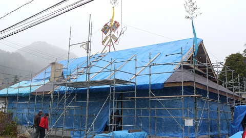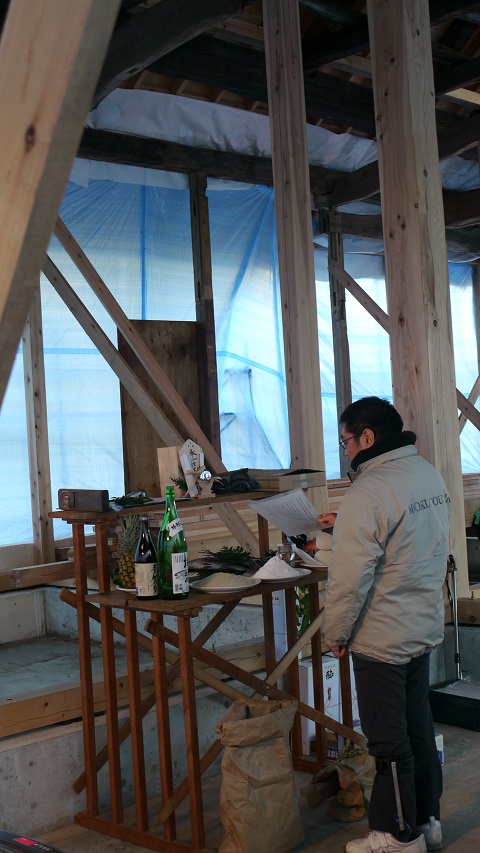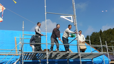 本日は、陸前高田市矢作での上棟式でした。1000年以上は続いている上棟式祝詞を私が奏上させていただきました。そして、餅まきの合図となる吹き流しを上げてご近所さんにお集まりいただいて、以前のお住まいの上棟式より63年ぶりの盛大な上棟式となりました。