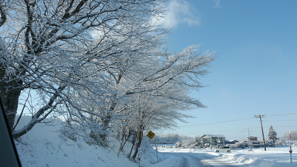 昨日の朝は、光り輝く通勤道中でしたが、好摩にたどり着くと一面を冬霧が覆う前が見えない白濁りの空気の中に居ました。事務所に着いて急ぎ日記を開き、光の朝の写真をUPして、上棟式会場を目指しました。なので、太陽の光で輝く道とは正反対の光届かぬ霧の中であのような日記を書いていたのですが、向かう道中には、その輝きが次第に戻っていました。春を思わせる様な陽の光は、冷えては緩みながら、この大地に眠る生き物を惑わせているのかもしれません。今朝は今朝でやはり寒く雪が吹き荒ぶ一日になりそうです。