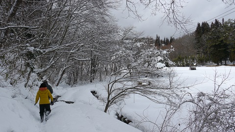 今朝も寒さが厳しく、雪を踏みしめるときゅっきゅっと音をたてていました。春の足音はまだのようです。(栗城)