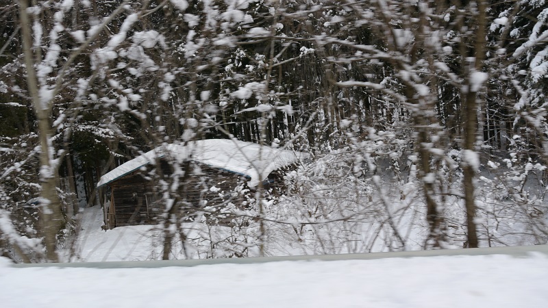 昨日の大雪は今もその影響を引きずっています。写真のここには人の気配はもう既になさそうですが、何とか読破した「銀河鉄道の父」の影響か、詩に満たされている景色と感じてしまいます。しかし、政次郎さんが父として、看取ったトシさんや賢治さんのその瞬間に際し、どれほどの悲しみが心に去来して止まなかったものかと思うと、書きようのない苦しさがこみあげてしまいます。この写真の家の前には、畑らしいものと何らかの木が植えられて見えますが、春の訪れを待ちわびる家族の営みがこの家の中にもあったのではないかと想像するのです。永訣との繋がりこそ有った無かったも知る由もありません、ただ、読み物から頂いた感傷がここに向けた目線と頭の中の映像に、映画のような雰囲気で詩の文字が上書きされて行くのです。どうどどっどう・・・・・