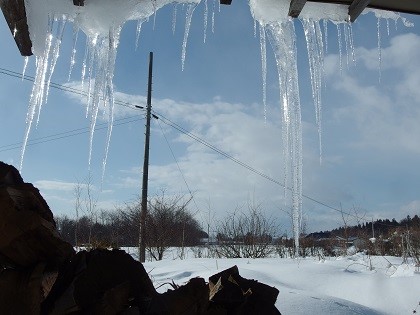 薪置場の氷柱です。場内の至るところにずらーっと垂れていて