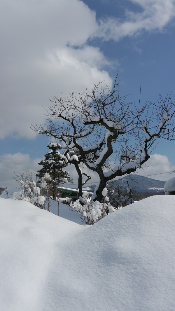 またまた雪降り積もった好摩の庭の杏子の木は、まだまだ冬眠の中にありますが、木起こしの雨の到来を待ち望んでいるように思われます。人間の方も日めくりカレンダーを捲り乍ら、次節の到来の秒読み態勢に入っております。東京の梅が脳裏から離れないのですが、1年掛けて東京に何度も足を運んで、都内各所の神社巡りをしましたが、都内の鎮守の森とそれを守り手を掛けてきた人々の凄さを目の当たりにしてきました。岩手は、見渡す限りの自然に囲まれ、ほっといても自然の力で生き生きとしていますが、その力の源がこの冬にあるのかもしれまいと、なんとなく思うのです。今年は庭造りと居久根の森造りに取り組もうと考えています。
