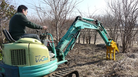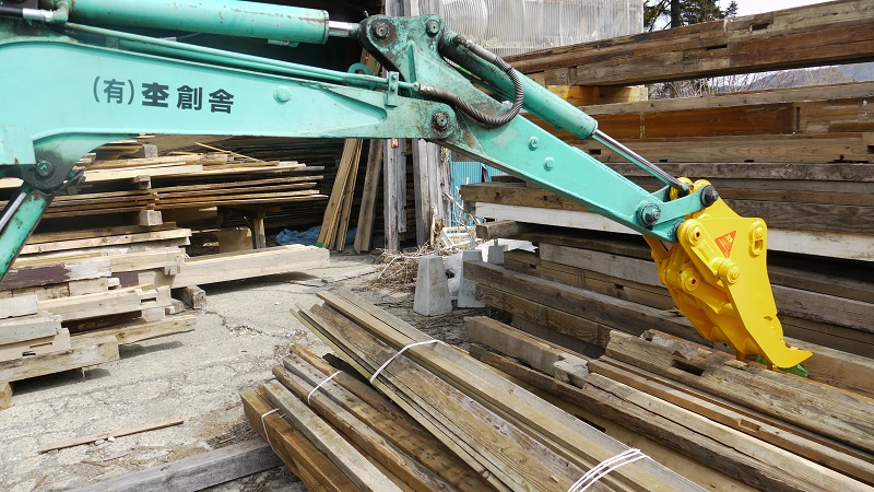 明日は病院で丸一日休みなので、ついつい明日の分の日記も書いてしまいました。と云うか、これはもう嬉しくて自慢の写真になりますね・・・重機に掴みが装着されたのです。丸太を掴んで移動するにも良く、現場で大きな石を移動させるにも便利です。何と言っても、好摩にばらけている背板の片付けに役立ちます。そして、薪丸太の玉切りでも大活躍してくれると思います。誰も見ていないことを良い事に、さっき一人で重機に乗って運転してみようとしたのですが、足元が滑って危険なので止めて、写真だけ写してきました。でも少し前に実際に動かしてもらったので、きちんと使えるのも確認できたし、まるで人の手の様に開いて掴むんですよーおらの手もこうなればと思いました。いや、私の体の代わりになるまでに操作できるようになろう!良く見えないかもしれませんが、アームのプレート補強もしたんですよー