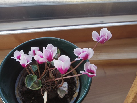 二度目の冬を乗り越えたシクラメンです。夏は一輪ずつ開花をバトンし続けていました。今年も咲き続けるのでしょうか。