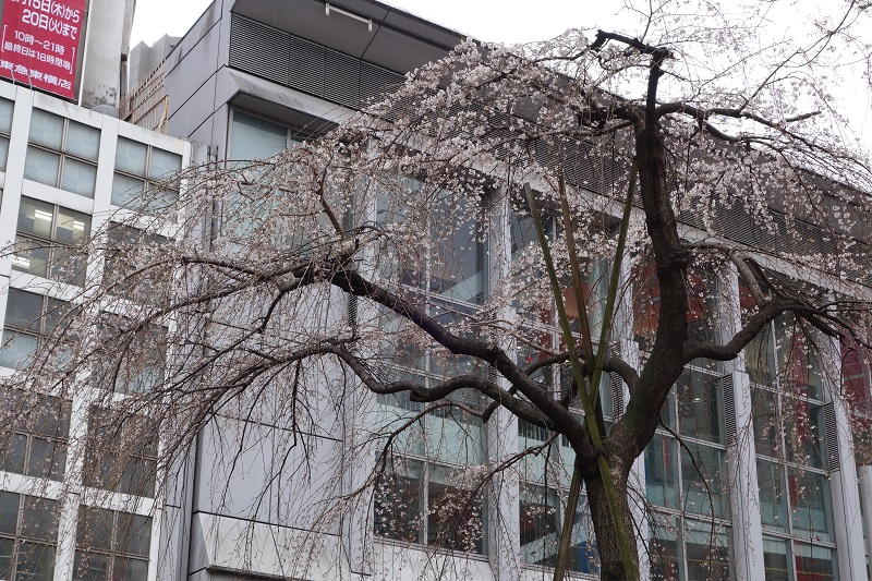 東京都渋谷区駅前のハチ公の銅像の上で枝垂桜が綺麗に咲いていました。岩手ももうすぐ春ですが、東京は春でした。