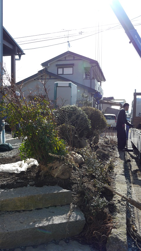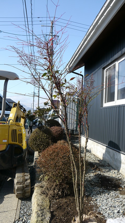 昨日も書きながら思ったのですが、私が入院して休んだ時は、矢作だけでなく、ここ月が丘も大改修中の姥小石も同様にまあ打ち合わせ途中でした。そして、この写真の庭木を運んできたのが玉里の大改修のお住まいの庭からです。玉里の大改修現場も私が入院時は工事中でしたから、当時は心配事が頭から離れず、悩みながらも無事完成を心から願っておりました。このホームページ上でも完成の雰囲気はお伝えさせていただいてまいりました。今回はその玉里おお庭からここ月が丘のお住まいのお庭にこれらの樹木を移植させていただきました。縁あってのことなのです。朝から、現地に向かい確認したのですが、繋がりの縁の深さと皆様のご厚情に感謝の想いで一杯になりました。