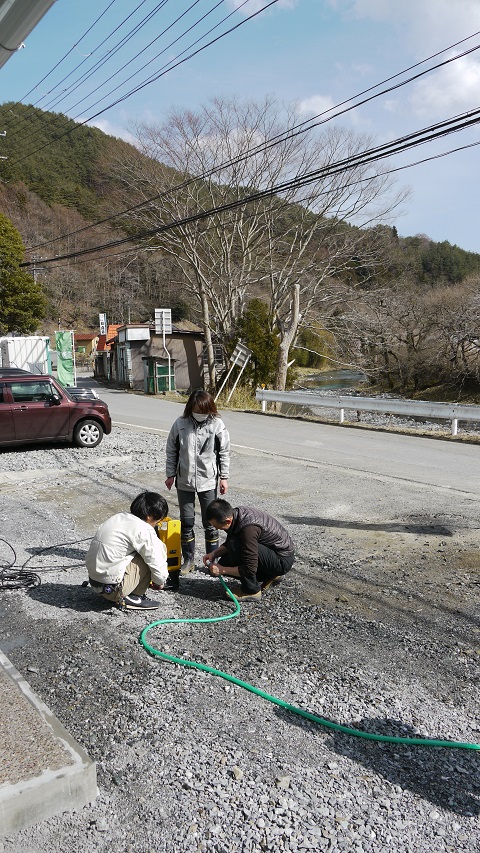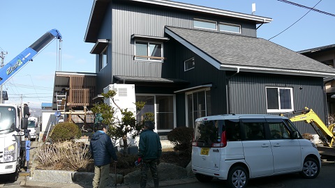 昨日は陸前高田市矢作の移築大改修完成見学を開催させていただきました。写真は外壁の汚れを落とすために持って行った洗浄機を当社の佐々木が上手く水道ホースと接続できなくて、施主のご主人さんにてつだってもらっているお笑いいやお恥ずかし写真です。どちらが工務店かわからなくなりますよ・・・・完成写真は私が細やかに写してまいりましたので、後ほど掲載させていただきたいと思います。収納部の棚とか、流し台の小細工類も楽しさがあるし、古材の建具やガラスの利用もなかなかいい感じでした。もちろん150年前の構造材の意匠性も重厚感も素敵でした。