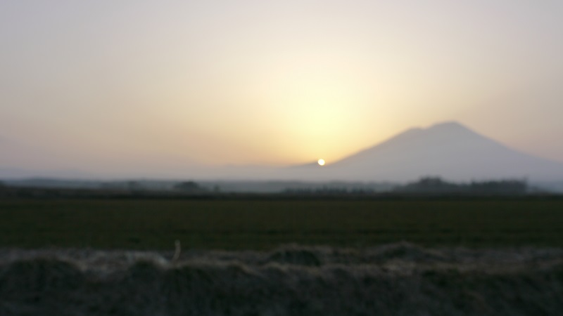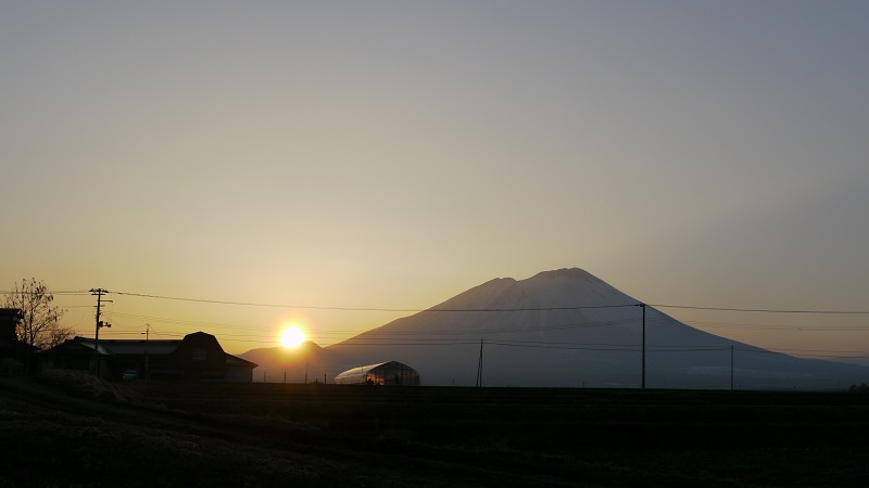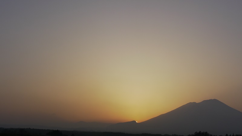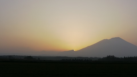 続きまして霞む岩手山に沈む夕日です。春の醍醐味を感じながら、平和な一日に感謝ですね。