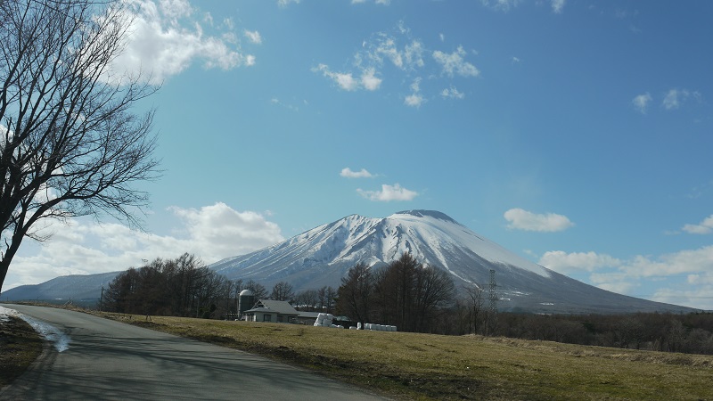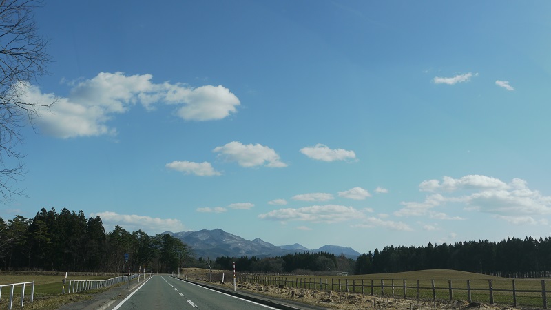 大本街道沿いはまだまだ工事途中でしたが、遥か向こうに見える霊峰の景色は昔通りに美しい大自然です。