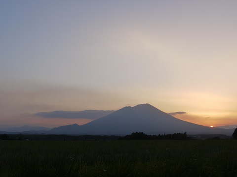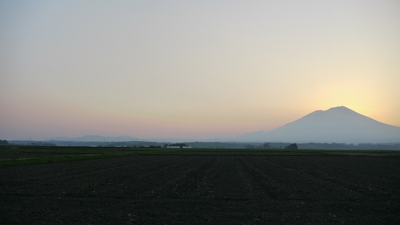 昨日と似たような写真ですが、春霞の夕刻の岩手山です。この時期にはこうした風景が望めるので、会社の行き帰りの道中はカメラを手放せません。桜が終わって次は野花も咲いてシャッターチャンスが多くあるように感じられます。