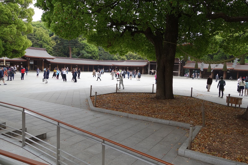 明治神宮では、落ち葉を毎日綺麗に履いて、木の根元に肥料として戻すとテレビで見たことがありますが、本当にそうしていました。自然の循環機能の素晴らしの中で我々は生きているのですね。物理的に見えない世界に手を合わせながら、150年の年月を経て育った森林と人々の関りの深さを間近に見て心から手を合わせたものです。