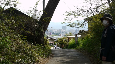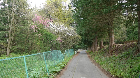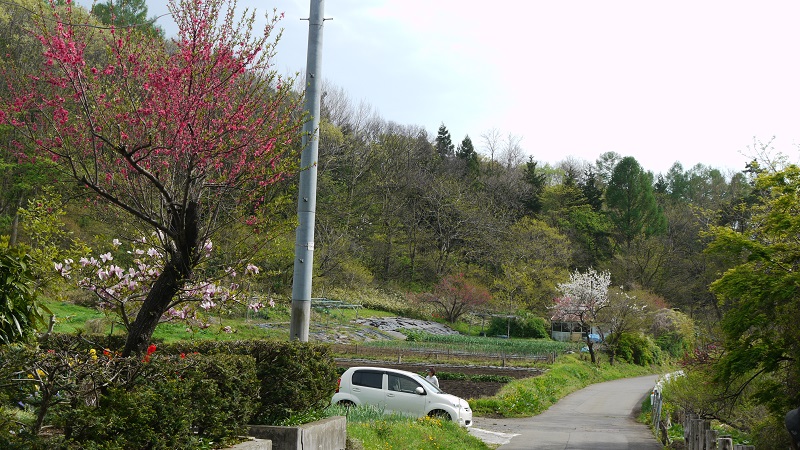 まず、高松の池を出て坂道を登りきると民家があるのです。とってもいい景色で畑があって長閑でいいところです。