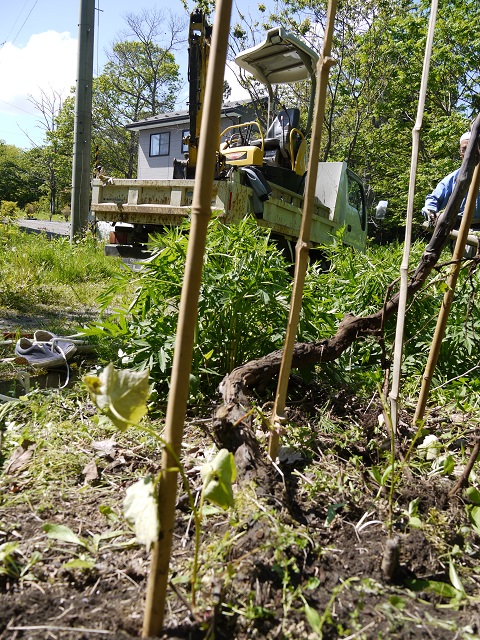 またまた青空写真です。昨日も気持ちのいい晴天で、快晴なる日でした。この車窓から写した岩手山の風景は、当社所有地の八幡平の畑に森と風の学校から移植されて来るシーベリーやアロニアを植えているところの確認に向かう道中でした。到着すると、とてもいい感じで植え込まれていて、元からのブドウの手入れもしてくれていて、喜んできました。