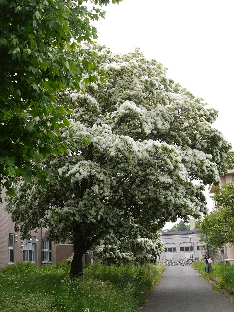 岩大卒大工の高橋に教わって、なんじゃもんじゃの木を見て来ました。満開です。道路の逆側には羊も居ました。岩大結構面白いですね!調べるとヒトツバタゴだとか・・・小鹿牧場にも植えられているそうです。今月末辺りは見頃になるかもしれませんよ。