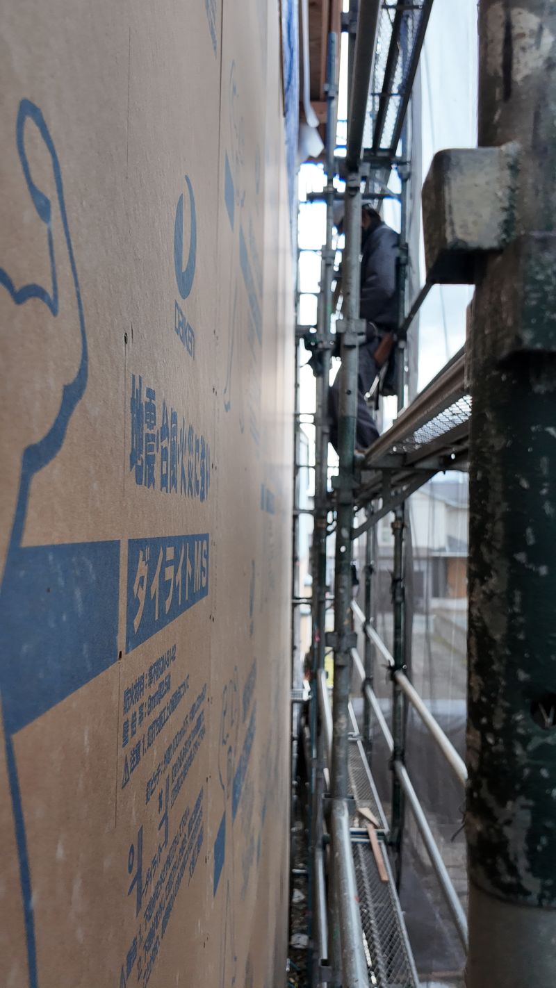 西青山の新築現場も鉈屋町の新築現場も外部の囲い込みが進んで、年末の年越しを迎える準備が出来てきました。特に鉈屋町は、狭いので足場と外部が近くて難儀しておりますが、頑張ってくれていました。