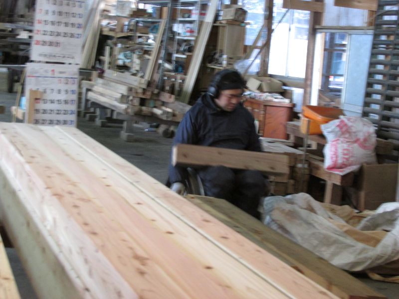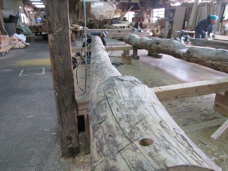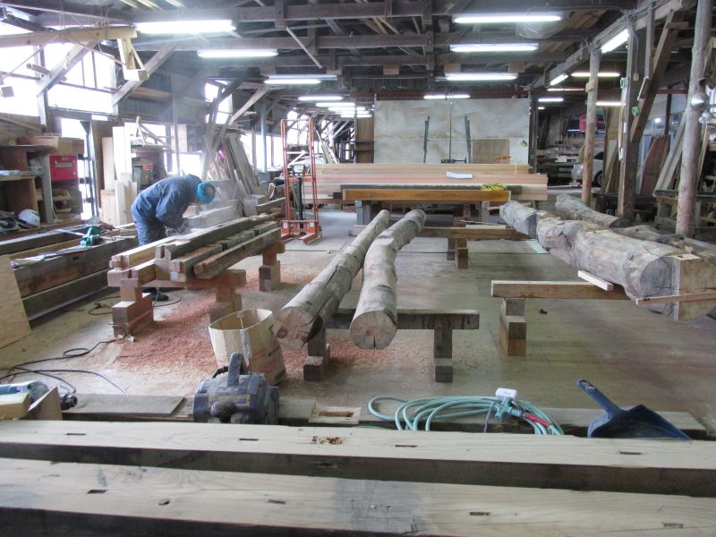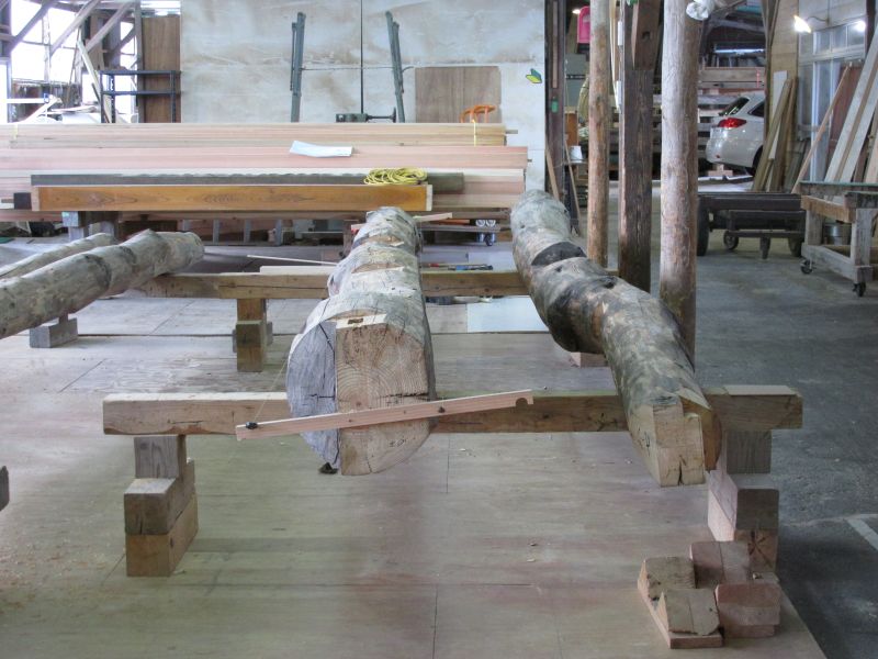 先日の車椅子大工が墨付けしていた古材の手刻みも進んでいます。