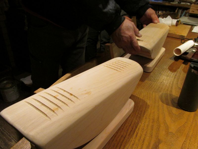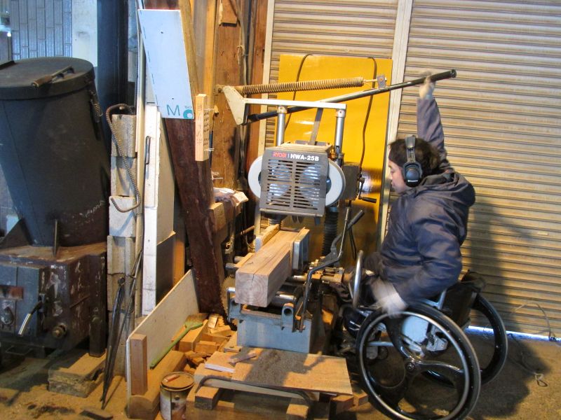 シンプルな肘掛椅子造りをしています。栗のテーブル板の漆も乾いたので出して、椅子造りの接着固め室として漆部屋が活用されていました。その前の月には手すり材の加工にも取り組んでいて忙しい家具職人です。椅子も手摺も住まいには役立つものですから、木で作る良さを皆様にも社内にも伝えていけたら最高です。