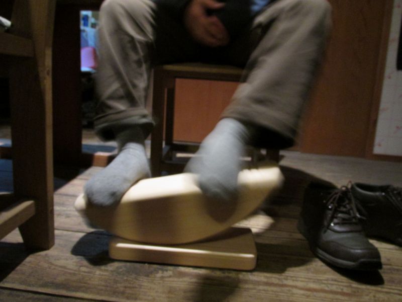 薪ストーブを利用して、サツマイモをダッチオーブンで焼き芋にしていただきました。そこに届いたのがリハビリに使えそうな、足踏み台です。麻痺側の左足が滑って落ちるので、停め板を改良してもらう予定です。焼き印で刻印したので、オリジナル木工県工具が出来ました。