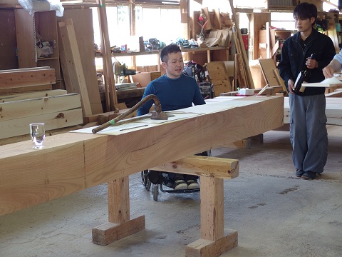 何より、「木の顔を生かす」この精神で何百年と育った木に向かい、とことん追求するその姿勢とその姿、目付き、普段の仕事内容は違えども、目指す道を等しくするものであろうと願う自身の仕事と重ね合わせてしまいました。まさに、この道より我を生かす道は無し、この道を行くぞ!と、やり抜く心で、鉄を叩く思いです。