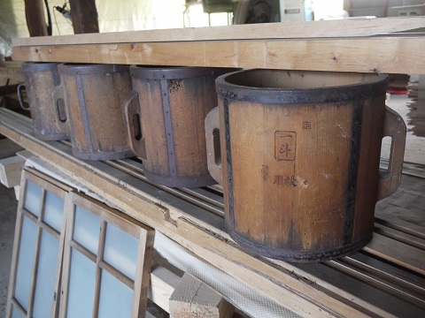 これは何だろうー?と思っていたら、この穀用1斗枡(こくよういっとうます)を椅子にしたいとのご依頼だそうです。どんな風に仕上がるかとても楽しみですね。木で物を作る事しか出来なかった時代の名残品の利用価値はとても豊富です。例えば、現代の再生可能エネルギーの代表格である太陽光発電パネルですが、耐用年数を過ぎるのは30年後ぐらいだと云われておりますが、廃棄時は埋め立てしか出来ません、今屋根で発電中の全てのパネルだと、日本で埋め切れる筈もなく、とんでもなく大変な未来が待っている訳です。さて、先の木の物であればそんな心配は一切無いし、再利用も可能で、しかも味わいがあるものに再生できる凄みもあります。日本は昔から木の文化が育まれてきた歴史がありますから、環境共生のその奥は深いのです。木を生かすには、扱う人の心根と良心が絶対条件となりますが、そうした人を職人を育成する会社たらんと思います。