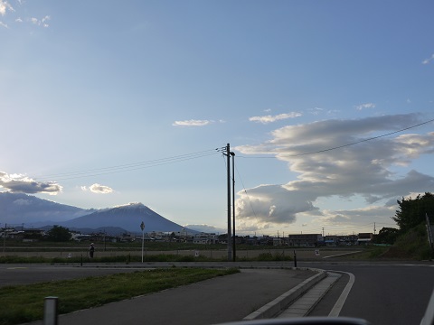 夕日を背にした岩手山をめがけて走る人の様に見えます。光ある方へひた走るそれは何を思い描いているのかわかりませんが、明日へ向かう活力ある姿に感じました。(栗城)