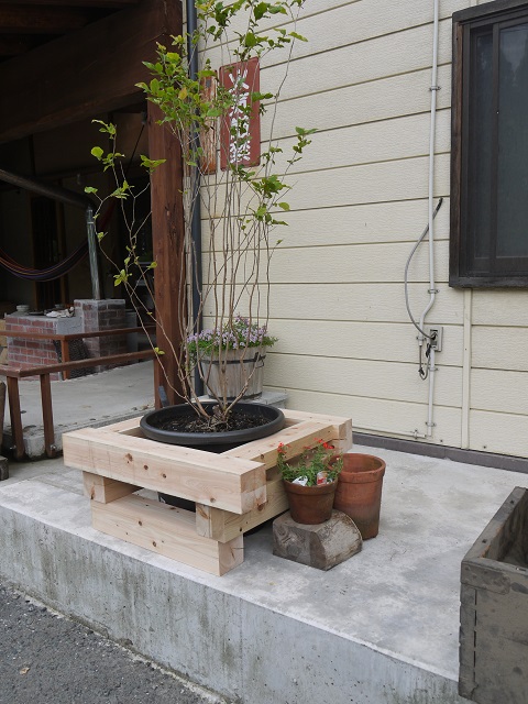 渋谷で感化されてしまい、好摩にも花壇を作ってみました。ナツハゼの木は日本のブルーベリーと云われるとの事です。杢創舎の利点を利用して、刻み端材のヒノキ土台を井桁に組んで転び止めにしてみましたが、約一名色を塗りたいと申しております。冬までには温室的な囲いも創ろうと計画しました。