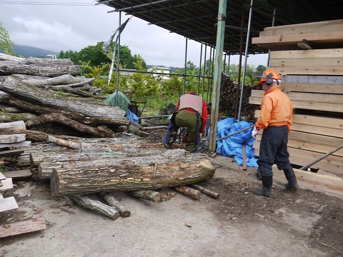 明日は、朝から田圃の草刈り応援で出かけるので、日記を書くことが出来ないと思うので、本日2回目の更新です。先日、薪造りをされたいお客様が、好摩でチyェンソーでの玉切りの初体験をされました。道具貸し出しで、扱いのポイントは田村部長がつきっきりでしていました。薪は楢材で程よく乾燥しています。割ってみると気持ちよく割れたそうです。良かったー♪近所への尾登の心配もなく、指導付なので、絶対最高だと思います。帰りには当方の事務所でお茶っこでもしていただければ楽しい汗が流せますね。料金も丸太代金なのでお得感が必ずあります。燃料代も少々加算されますが、ご検討如何でしょうか?