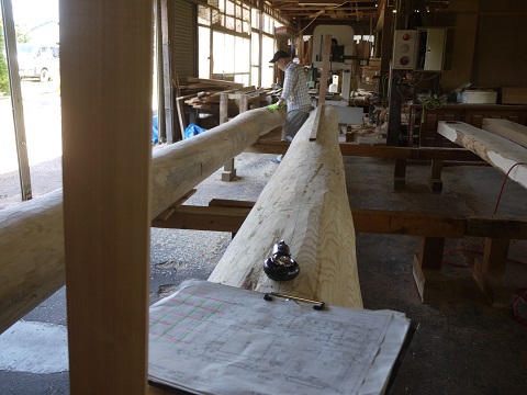 昨日は、来客多くて忙しい一日でした。午前中は、建築業界専門誌の取材で、好摩の作業場を見てもらいながら、大工の作業全般を紹介できました。写真の大きな丸太に墨付けしたり、マサカリ・チョウナ・ヤリガンナも実演と、普段の姿のままに取材を受けることが出来て嬉しく思いました。午後は、フランス人の人と馬搬の岩間さんが突然いらして、同様の大工作業見学をしていかれました。明日のチャグチャグ馬っこにも参加されるそうです。当社の館野建具工も毎年参加しているのですが、今年は子馬が出るとのことなので、明日は応援に行こうと思います。
