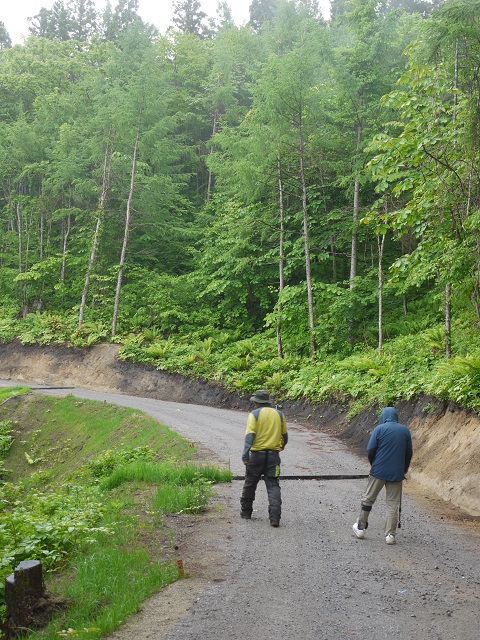 昨日は遠野市の附馬牛の山林内を岩間さんに案内していただきながら、こうして歩いてきました♪立派な林道です。山なので坂道はきついのですが、杖を付いて踏ん張りながら、先導の岩間さんに遅れずについて歩けました♪カモシカやクマの足跡を教えてもらいながら、緑萌える林内の澄んだ空気をお腹一杯に吸い込んでとっても気持ちよかったです。最近恒例の現場便りでの写真公開も見て頂ければ幸いです。カメラマンは専務です!