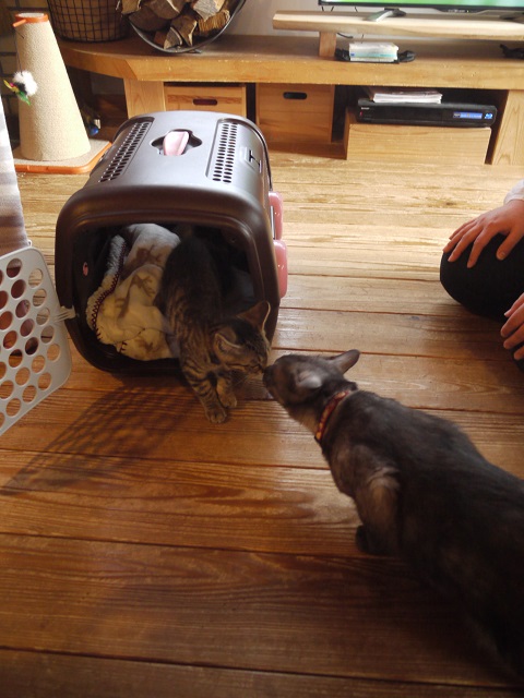 自宅に子猫が二匹やってきました。昨日のテレビではこの時期1000匹の子猫の殺傷処分が問題視されていましたが、当家にはそうした事を未然に防ぎたい思いの方からの相談メールがありまして、本当は一匹だけのつもりでしたが、娘がどちらかを選べなくて、二匹譲り受けてしまいました。その日から兄弟が毎日仲良く飛び跳ねて、当家のサトとも仲良くなって遊ぶ姿に癒されています。
