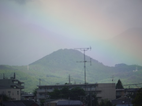 数日前の写真になりますが、自宅から好摩方向側に虹が架かっていました。虹を見ると何故か人は声を挙げて近くの人にも早く見てと誘いますよね。我が家も同様で、鮮明な七色に惹かれて、夫婦そろって驚嘆の声を挙げました。天空のわずかな時間の演出は儚くて、虹の根元に宝箱があると信じた幼い頃の思い出を辿りました。虹に向かい燕が綺麗な飛行筋の残像を残して行きましたが、好摩のキセキレイの雛は、たぶん無事巣立ちを迎えたらしいとの話が聞こえてきました。「たぶん」が、虹の様に目に見える姿で本当であって欲しいと思います。そして、虹を潜る飛行を我々にも見せて欲しいものです。