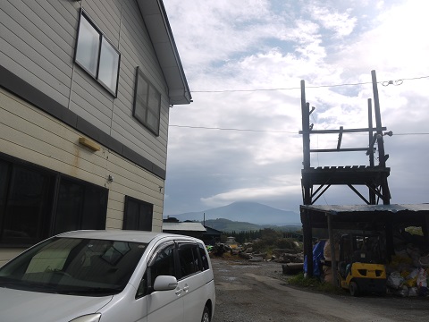 好摩に着いて地面に足を付いて写した姫神山です。櫓上の雲間の青空に心の余韻が残りました
