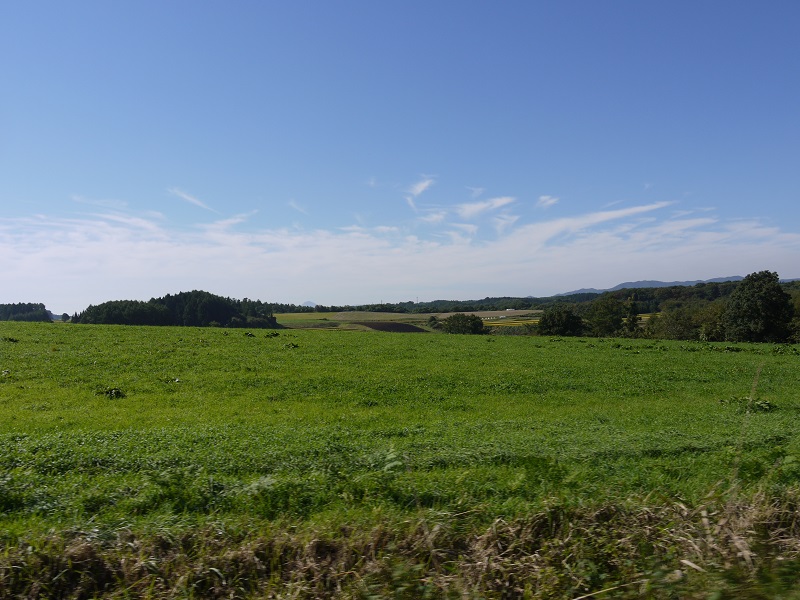 本格的な秋の訪れと云われる季節に入りましたが、周囲の緑の色がとても濃く感じます。この草原の中を思い切り、走りたくなります。そう、まるで子供の頃の様に何も考えずにかけっこして遊べたらどんなに楽しい事でしょう!そんな時私は、頭の中でそうした事をしている映像を創れる能力があるようなんです。だから、何時でもぶっ飛んでます。