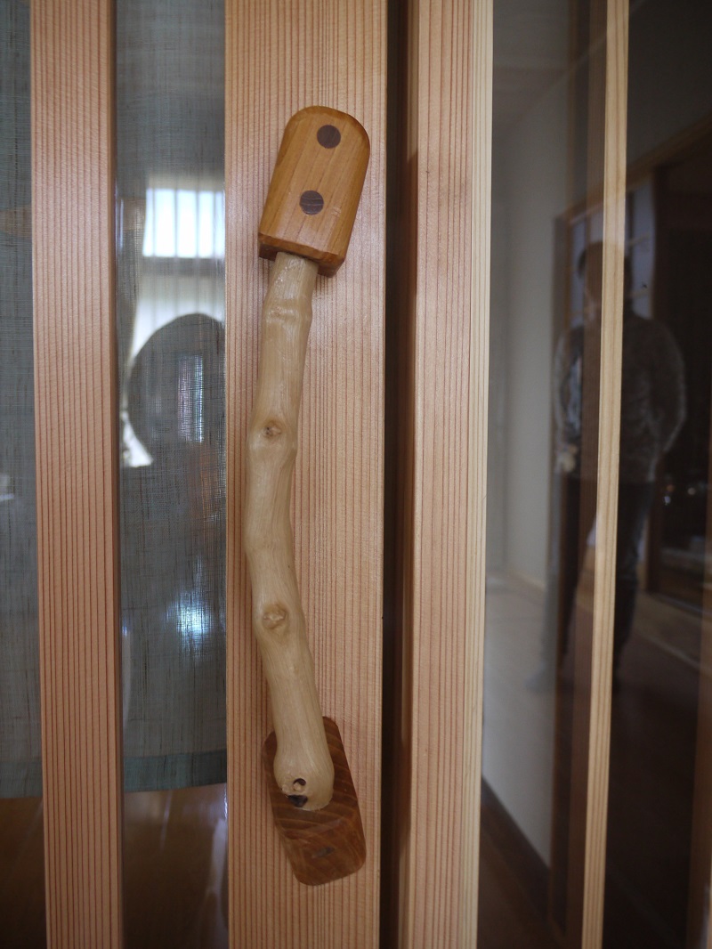 昨日、改修工事でお世話になった岩手町のお客様に、工事完了のご挨拶と御礼でお訪ねしてきました。時は丁度秋祭りの最中で、街町がとても賑やかでした。そして、葡萄蔓の駕籠編みが趣味の奥様に喜んでいただいていたのが、葡萄の木の取っ手です。家造りに建具は必ず必要になりますから、その建具のデザインも住まいの中で貴重な存在となる場面が多々ございます。当社オリジナル建具は、デザインからご自由にご注文いただけるようなお打合せをさせていただいています。