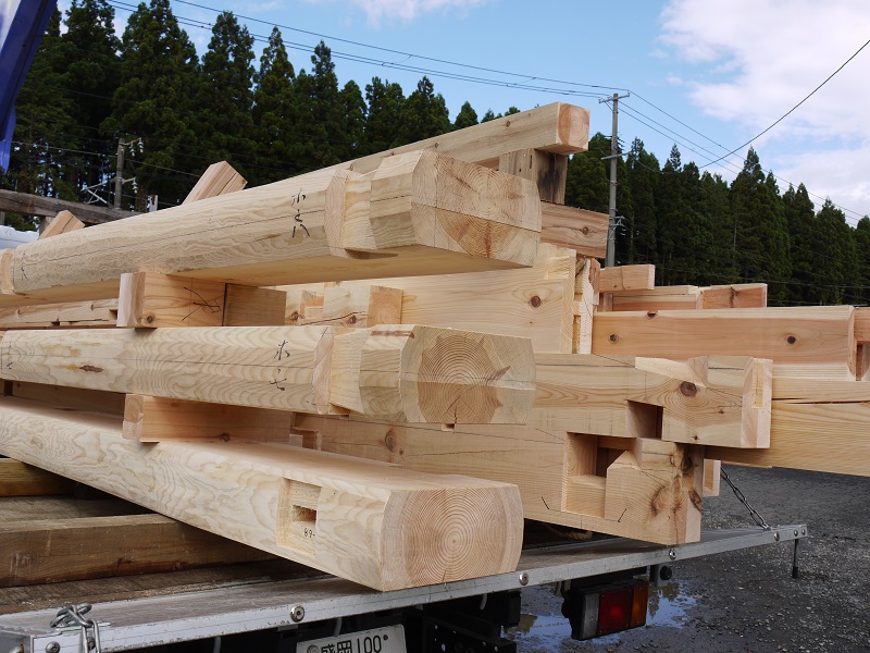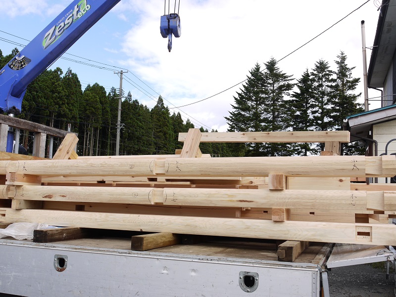 いざ出陣とまでは大げさかもしれませんが、釜石の新築現場の上棟材が今朝出発しました。今時、この手刻み材が閉伊街道を走り、沿岸に向かうのは珍しく久方ぶりになるかと思われます。盛岡のご城下を水害から守り続けた県産材が南部大工の伝統の技をその体に背負い、宮古街道を復興に燃え上がる街、釜石へと向かいます。当社の歴史にも記憶を残す上棟になるのだと思います。本格的には来週水曜日頃からになりますが、工事の安全と晴れやかな天候を祈ります。