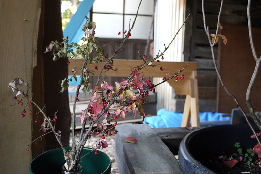 木のお店の入口の草花も秋の色になりお出迎えです。日中は暖かくなることが多いですが、朝晩はぐっと気温が下がるようになりましたね。紅葉も山頂から麓へと降りてきました。皆さんはどちらか紅葉狩りへ行きましたか?(栗城)