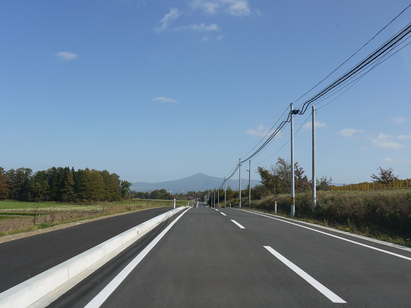 雫石のいわてリハビリセンターからの帰り道、柳沢小中学校前を通ると、道路がすっかり整備されて綺麗になっていました。桜並木が綺麗さっぱり無くなったのは残念で寂しいのですが、真っすぐに伸びた道路の先には姫神山があって、正しく姫神ロードでした。今は満月です。たぶん夜になるとこの道の先に真ん丸の大きな満月が山の頂の上に望めるかと思われます。