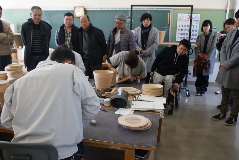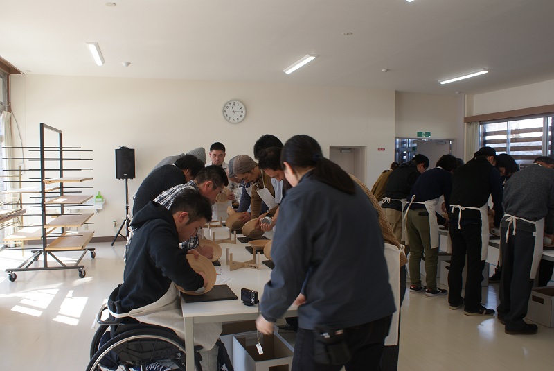 青森県白神山地の麓にあるブナコ西目屋工場にブナコ細工の見学と製作体験社内研修に行って参りました。ブナの木を薄くスライスした板が8mm幅の細い材となっていて、それをクルクルと丸く束ねてから丸い茶碗で曲げ伸ばして器の形を造り上げて行く事で、照明器具の傘などが造れる様でした。見学中は簡単に見えても、いざ自分で取り組むと力加減が大変だった模様でしたが、流石工務店メンバーの面々ですから、「早いですねー」と褒められていました。物作りの楽しさを再確認できて、デザインアイディアを学ぶ良い機会だったと思います。