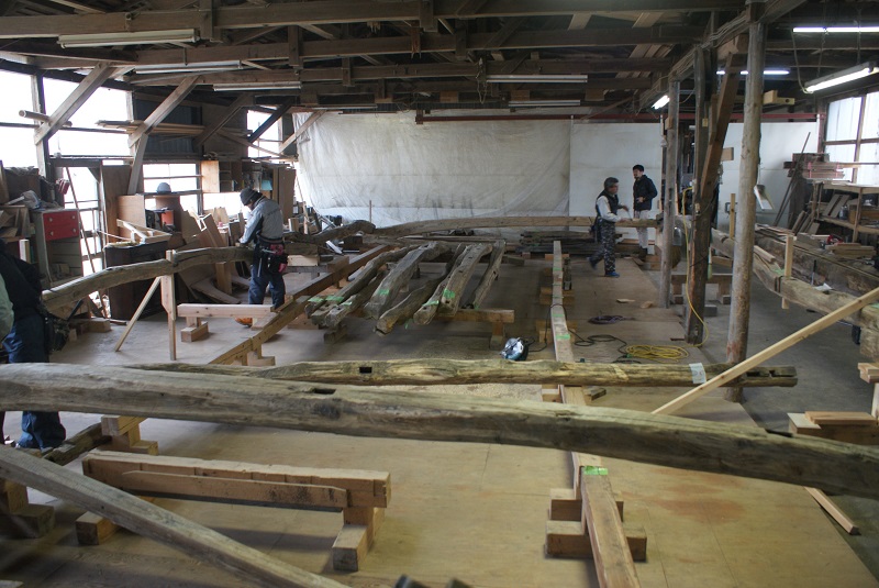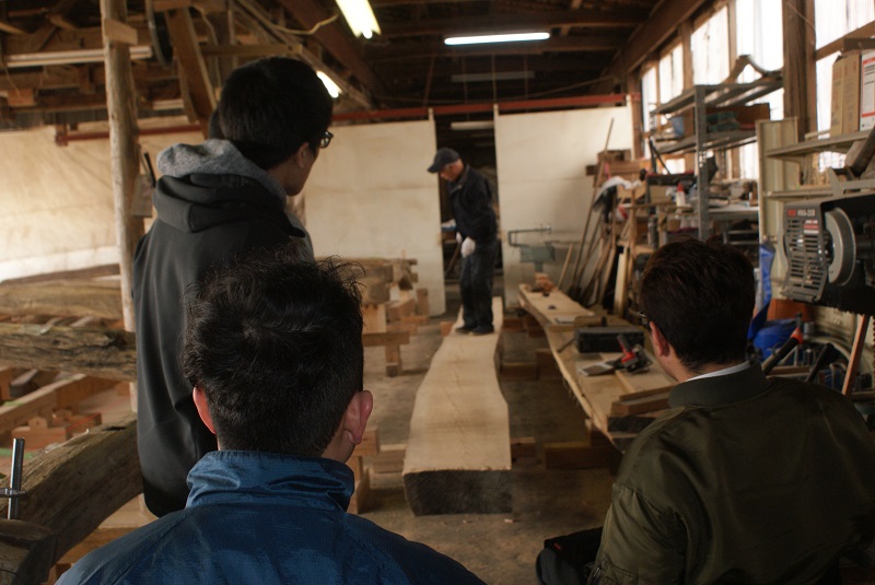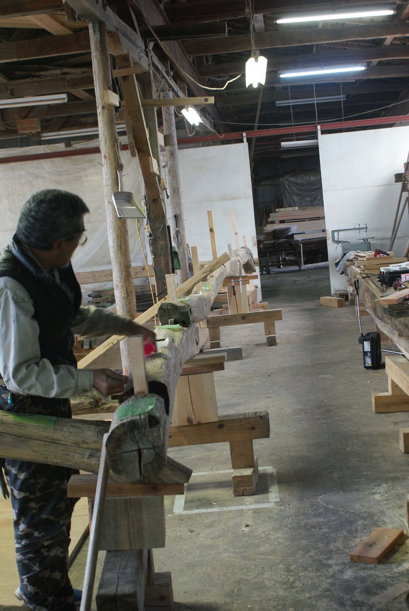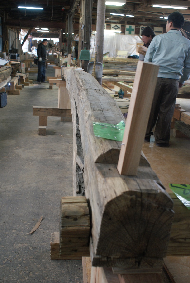 古材を場内で仮組していました。凄い迫力に圧倒されます。そして、これが出来る技術力を後世に伝えるためには、若者が手元に入ります。100年前の大工の手仕事をこれから100年先に繋ぐのは今を生きる我々の責務でもあります。
