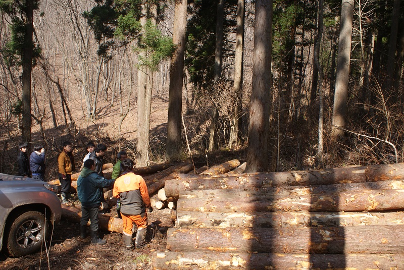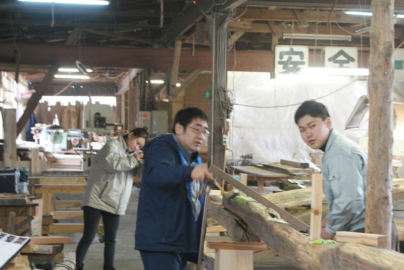 今朝は、20代の新人大工が働く現場に突然訪問して、作業の様子を見たり会社の取り組みの話をしたりして参りました。タイトル通りの杢創舎大工塾の一環です。そこで、先日の山見学をした感想を発表させたのですが、「木を町中で伐っていると思っていたので、あんな山で伐っているのに驚きました。」と話した者がおりました。普通は山で伐るのが当たり前だと思っている私にとっては、その感想の方が驚きでもあります。考えてみると、一般の人が木を伐る風景を見るのは、街路樹の伐採位しか目にしないものだと思いますから、現代の若者世代の感覚は確かにそうなのだと思われます。だからこそ先日の様に、自分たち家造りに携わる側が、川上である山の姿を知り学ぶために直接現地に足を運ぶことは重要だと思います。