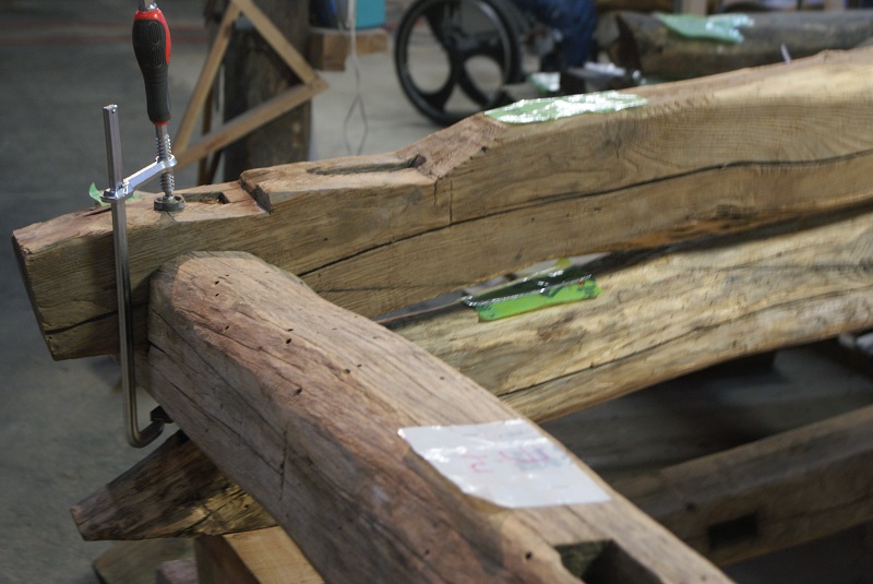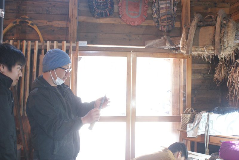 昨日、障害者就労支援の活動をされている方々の見学を受けました。偶然古材の仮組をしていたので、昔の大工さんの仕事を説明した後で、製材機のない時代にどの様にして、加工していたかをマサカリで殴り込みの実演をしての説明をさせていただきました。でも、現代ではこれをする機会は殆ど無いのです。なので、大工の仕事とはどのようなものかを訪ねてこられた方々に良い説明が出来たのかどうか内心不安になりました。でも、車椅子大工大和田の長椅子造の仕事も見て頂けたので、障害者の就労支援をされている皆様にお伝え出来るところはあったと思われます。