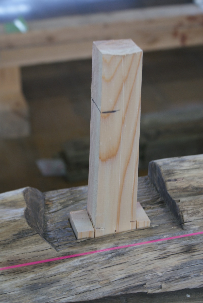 先の二段重ね部分の柱のホゾは重ホゾになるのですが、その模型も製作して取り組んでいました。