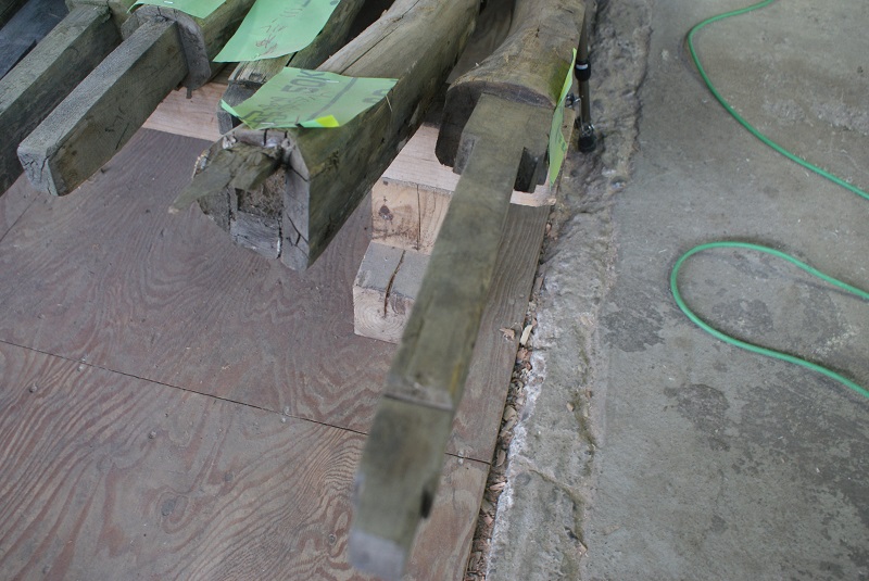 水糸を水平に張って木の曲がりや高さの上下を調べると、古い木組みの仕組みが見えてきます。そして、新たに何をすれば良いかも見えて来るものです。